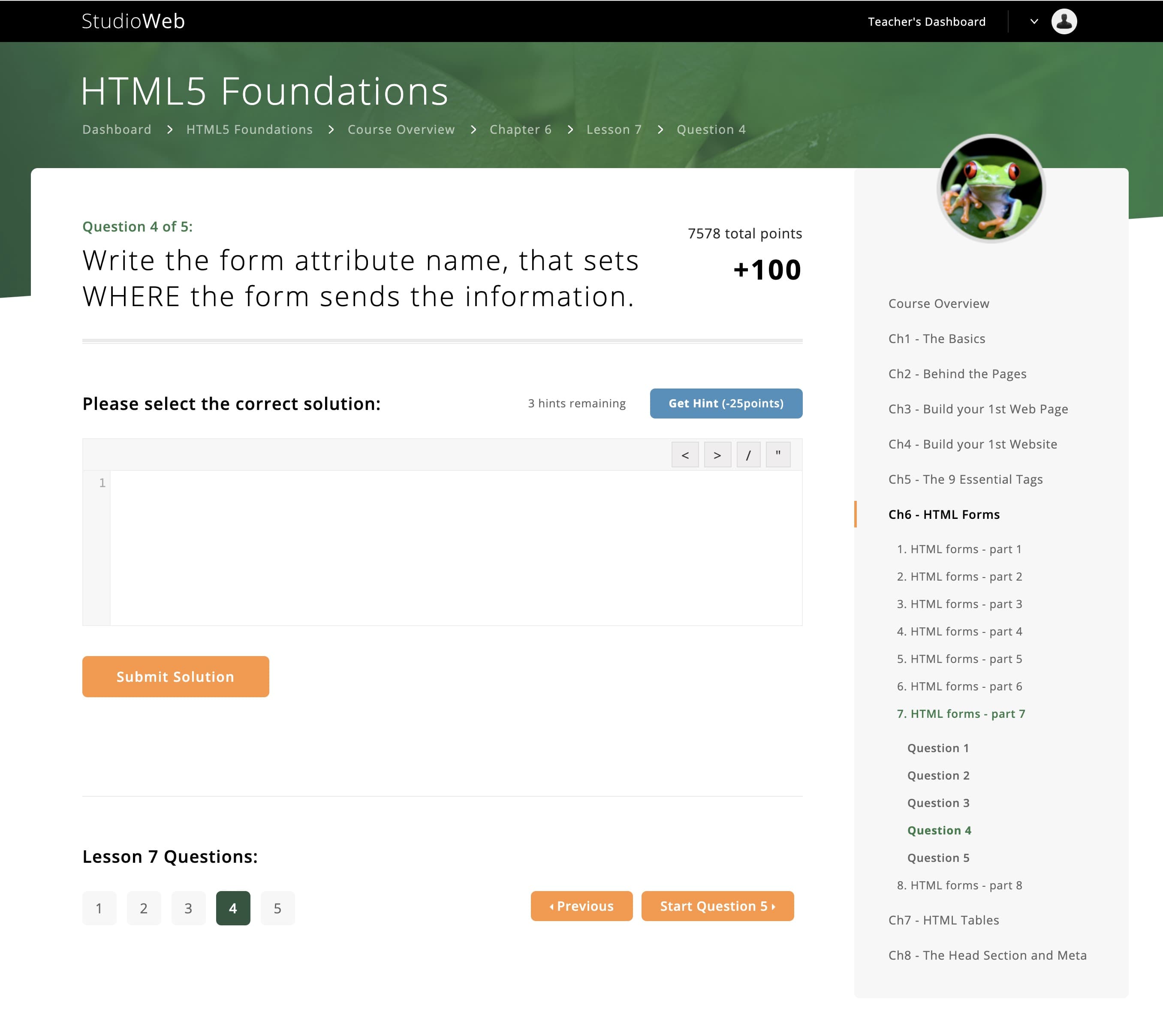 Learn. Test your knowledge with questions and coding challenges. Repeat.